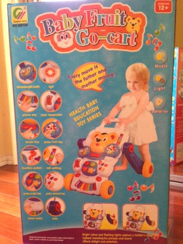 Learning Activity Walker is a multi-functional walker with light, music, sounds and other fun & learning functions. Stimulates senses through bright colors, fun pictures and rotating little beads. Promotes cognitive development when baby learns to master how to spin the beadroller, flip the book, & identify animal sounds, colors, fruits, & music. Have your little one discover and explore through brightness of colors, vivid pictures, interactive buttons, soothing music, and animal sounds. Use this walker as the baby grows by first playing on the floor with the interactive learning activities and later as s/he pushes it around all the while having a fun and developmental experience that gives you some time to sit back and relax or join in the fun with your little one.