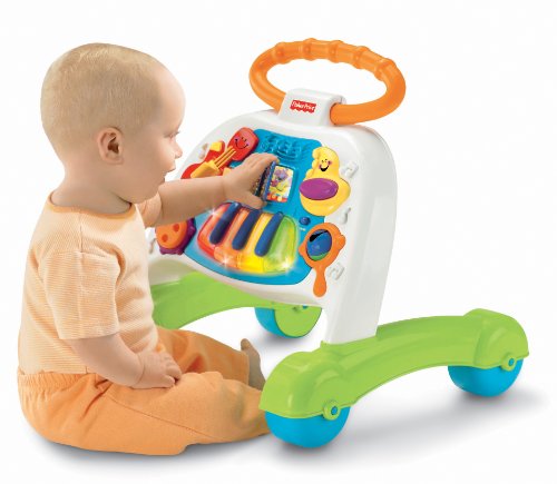 My son is 13 months and not yet walking independently. I thought this would be perfect so he could push this around and get anywhere he wants to go. It moves a little to fast for him so he isn't using it as a walker yet. I think it will function better in that capacity after he is independently walking. I was hoping for something to help him walk now and get some confidence. But, he does enjoy pushing the buttons and playing with it for now.