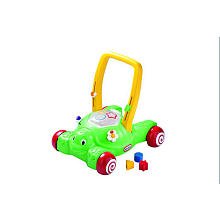 We are buying this toy for the daycare where our grandson plays. He has one at home and as he is not quite steady enough to walk on his own yet, he zooms around the house with this toy to balance himself. It affords him mobility and he plays with the small pieces constantly, taking them out and putting them in the "turtle mower"...he has had a fall at daycare trying to push a similar toy which is not as sturdy so we are providing this more suitable toy for the daycare facility.