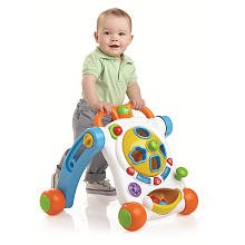 The Deluxe Baby Walker features easy to grip handles, lockable wheels and a shape sorter with sound effects. Fold for easy storage.