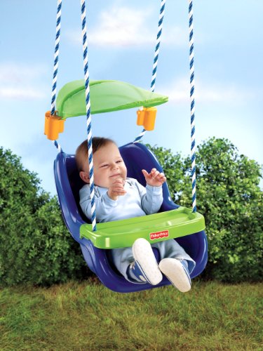 Fisher-Price Infant to Toddler Swing with SunshieldWhat’s even better than enjoying swing-time fun in fresh air and sun? Swing-time fun in the shade! The Fisher-Price Sunshield Swing has all the best baby, toddler, and parent-friendly features of the popular Fisher-Price Infant-to-Toddler Swing, PLUS an overhead sunshield canopy with UPF 35 UV sun protection that helps provide an added “shield” from harmful UV rays of the sun. For children ages 6 – 36 months.