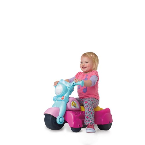 We have supplied your baby with some sweet wheels plus a rockin' soundtrack through this convertible walker-rider toy. Baby activates the tunes by walking with or scooting the bike forward. And the more baby rolls along with the bike, the more tunes will play!