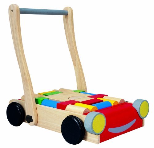 Plan Toy Baby Walker has joined innovation with "old world toys" by crafting a progressive tool for crawlers who would be walkers. An adjustable handle, a low center of gravity and 24 natural and colored unit blocks make this cheerful looking toy a must for any collection. Made from recycled rubber wood and colored with natural stains, when they aren't using it for building future skyscrapers, it will invite your crawler to his or her feet and get them moving.