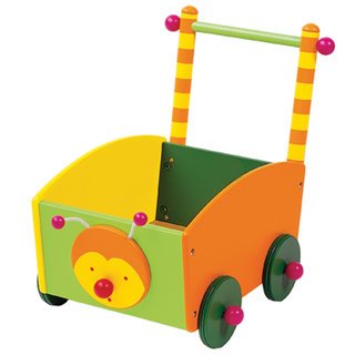 Louna, one of the most popular ranges in France, features a chirpy little pink and orange bee and a selection of her little insect friends. Colours are warm but soft and it makes a great range for a little girl's room when you want something that isn't TOO pink! Pretty wooden walking trolley, perfect to help with toddling, and for pushing toys about.