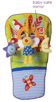 Better used as a toy to attach to the inside of the crib. Unless your baby has crazy long arms or the back of your seat is really low your baby will probably not be able to reach the toys, just look at them, which was a tease to my kid. Didn't really like...